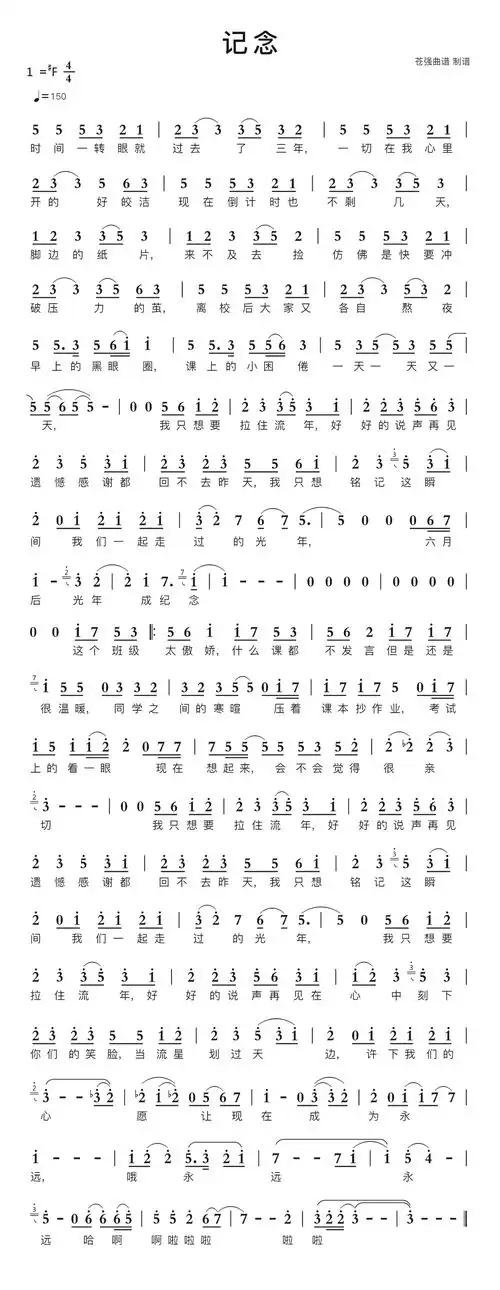 纪念歌曲词谱