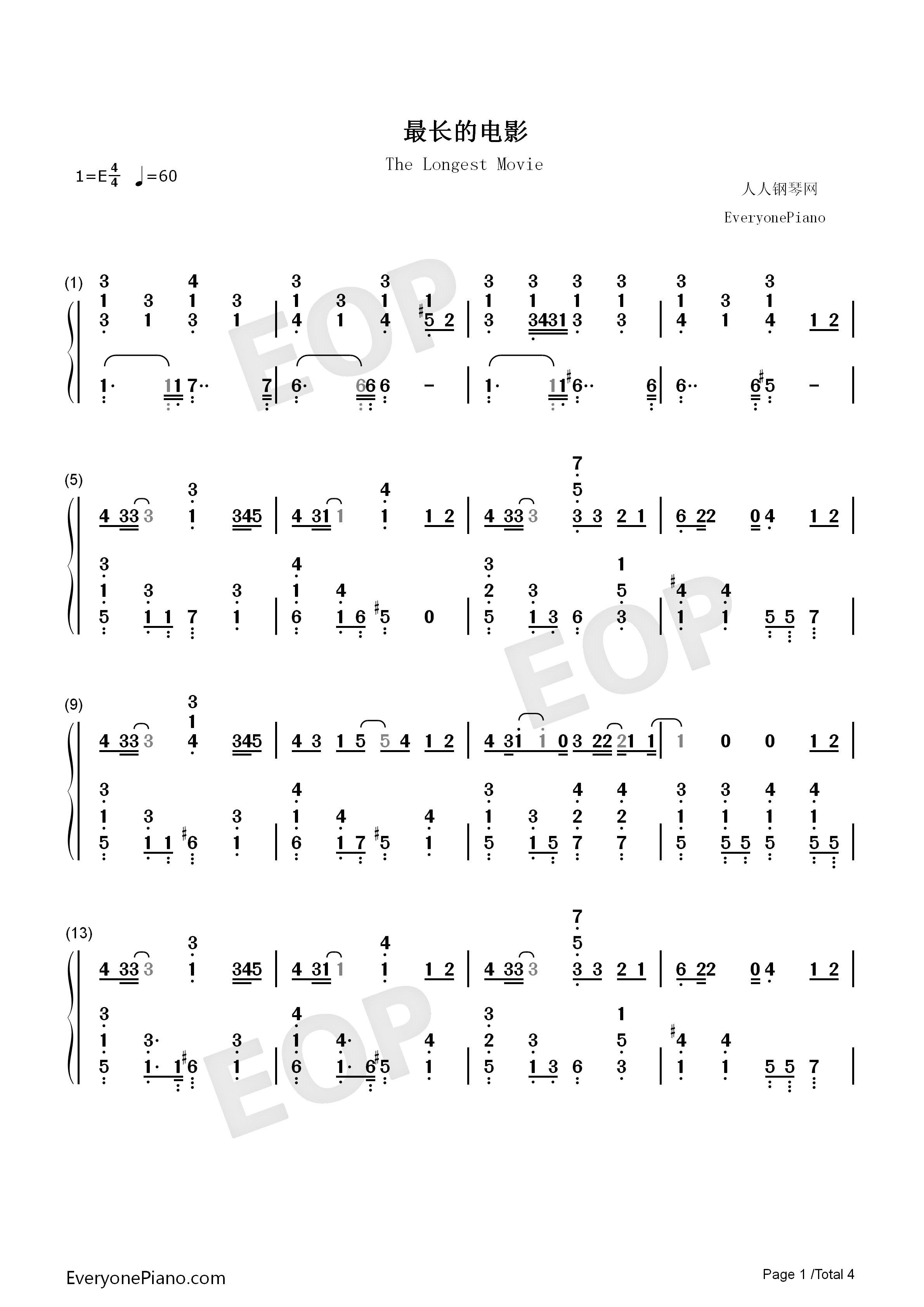 最长的电影-周杰伦-eop教学曲双手简谱预览1