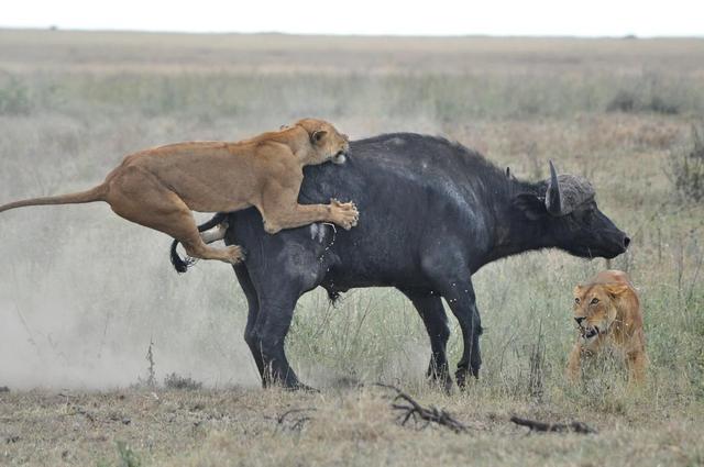 另外还有一项佐证就是非洲草原上的狮子,在捕食非洲野水牛时,往往会跳