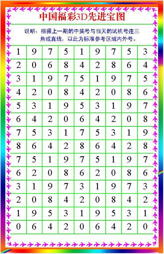 3d九宫八卦图试机号参考图福彩和值跨度对照表数值号码分区贴纸