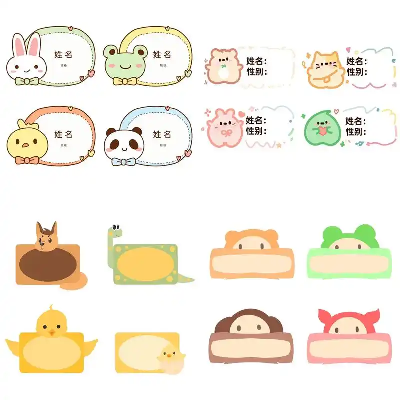 免抠素材96幼儿小学生新生卡通姓名牌合集