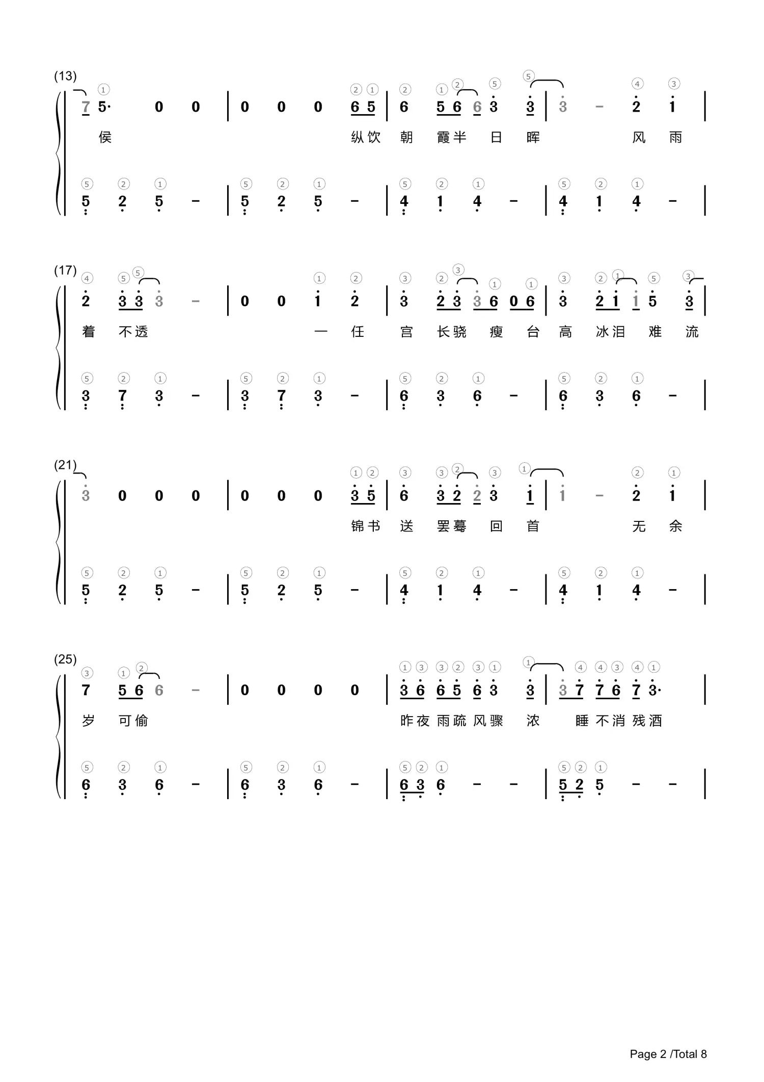 知否知否c调钢琴谱双手数字简谱详细指法带歌词