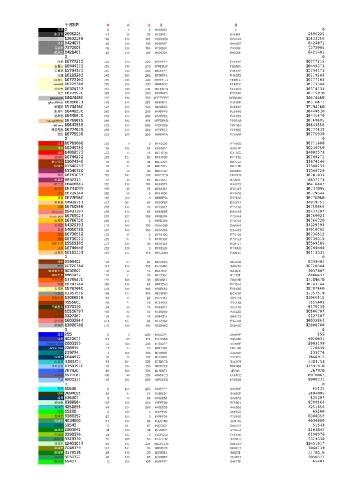 颜色数值对照表