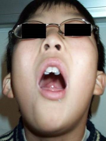 这就是腺样体面容吗?他的硬腭算高拱吗?后面的扁桃体算是几度大?