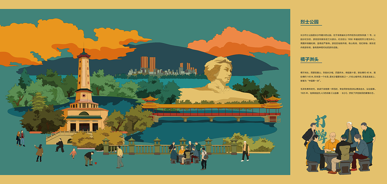 2019青春答卷#"生活在长沙"系列城市场景插画设计
