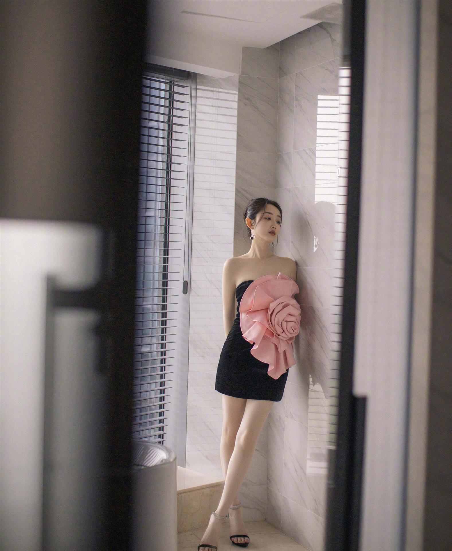 蒋梦婕简直是开挂一袭蓝色抹胸裙开叉到腰部性感又撩人