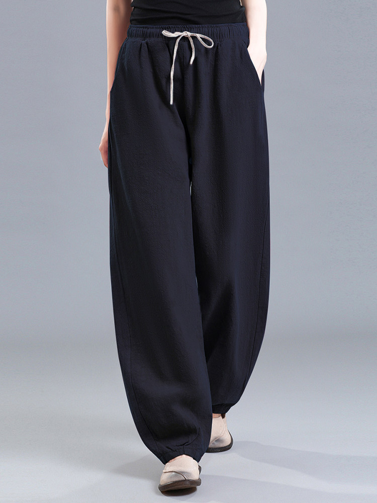 100%纯亚麻灯笼裤纯色休闲棉麻哈伦裤女 - 抖音