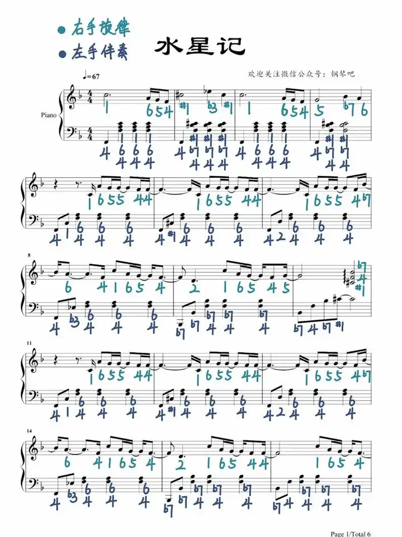 《水星记》钢琴谱(附双手简谱)~|||调号:降7#五线谱 - 抖音