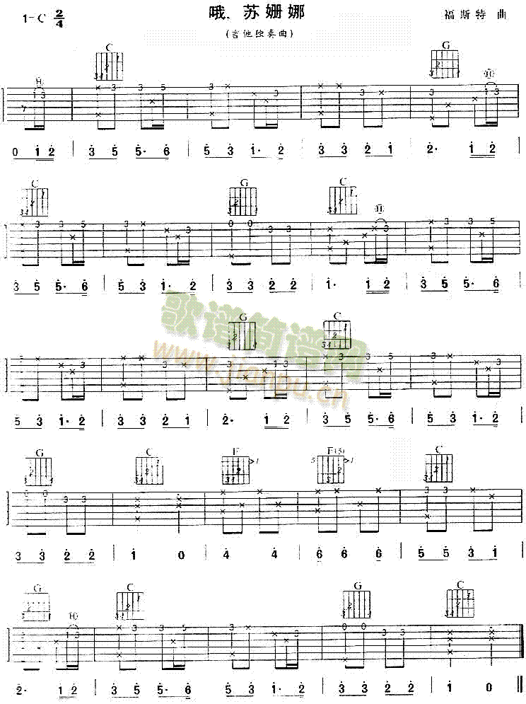 哦苏珊娜吉他谱怎么看?有图
