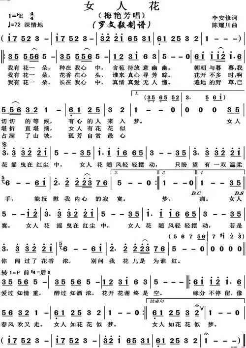 女人花简谱-降央卓玛演唱-李安修/陈耀川词曲1