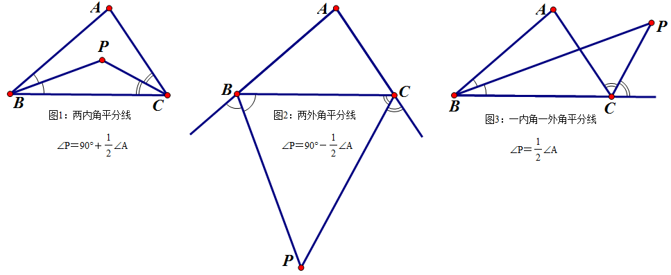 c的外角平分线 图3:pb是∠b的角平分线,pc是∠c的外角平分线 【模型