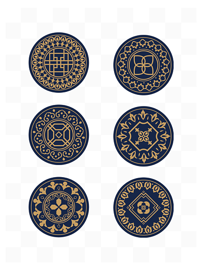 中式青花瓷图案花纹中国风免抠元素