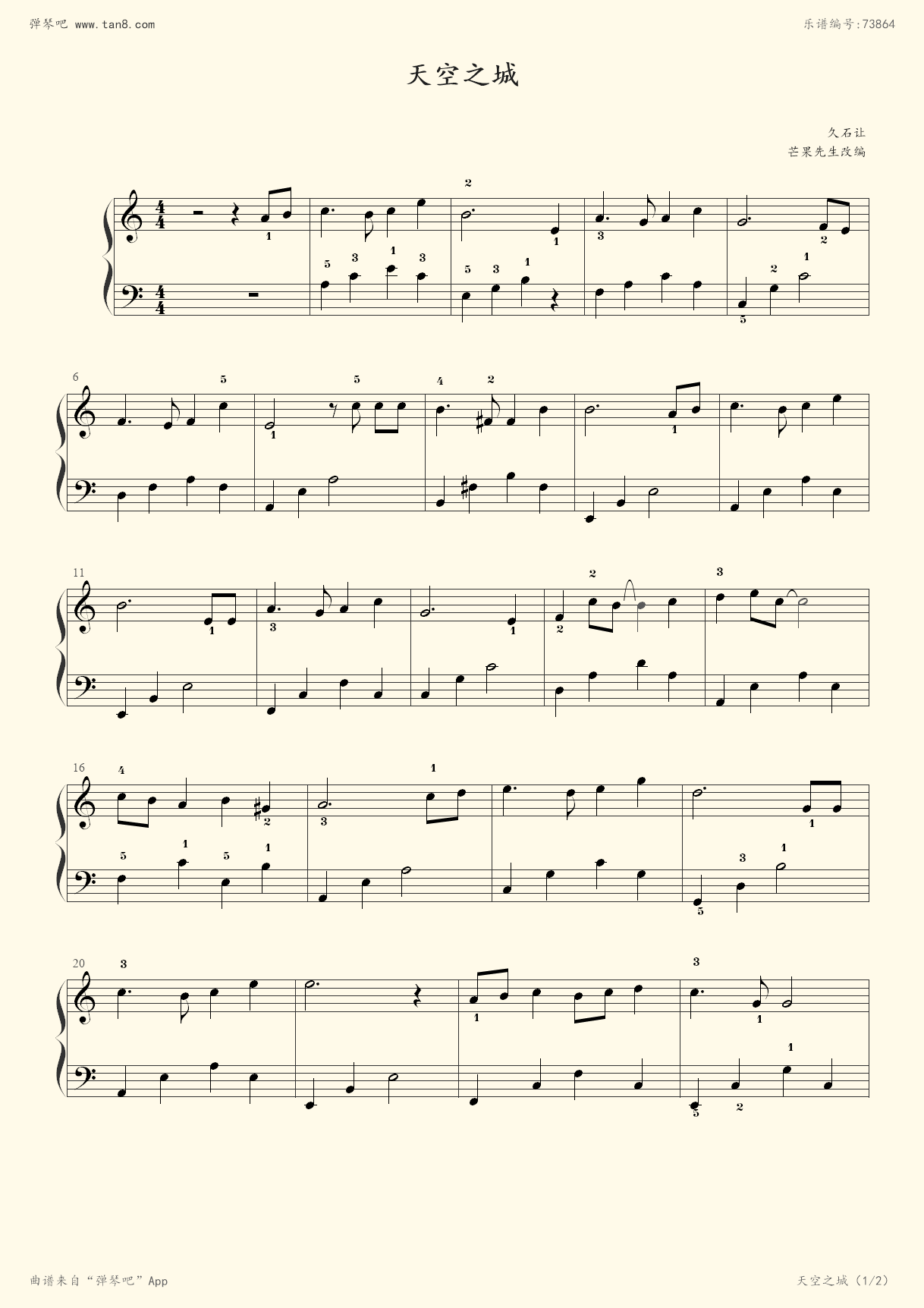 天空之城,天空之城钢琴谱,天空之城c调钢琴谱,天空之城钢琴谱大全
