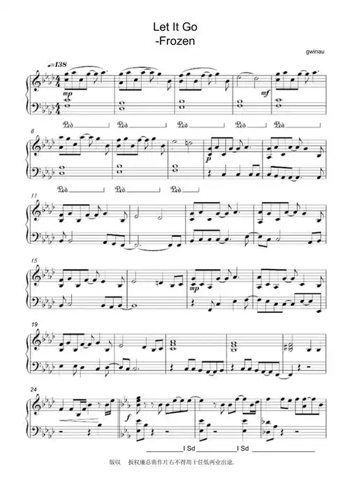 完整版letitgo冰雪奇缘主题曲钢琴曲谱