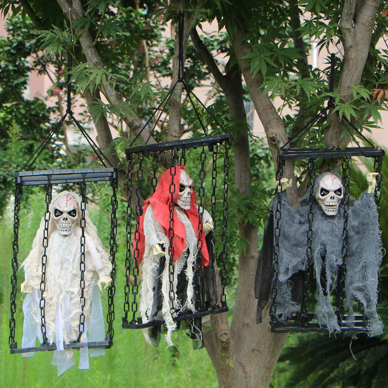 万圣节鬼屋道具密室仿真人骷髅骨架模型恐怖鬼节大吊鬼
