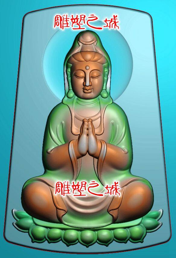 精雕图 灰度图 浮雕图 双手合十莲花坐观音