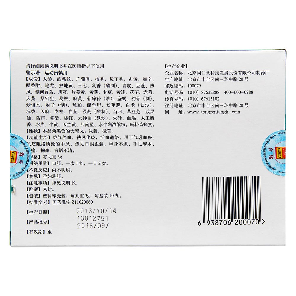 人参再造丸(同仁堂)益气养血,祛风化痰,活血通络.
