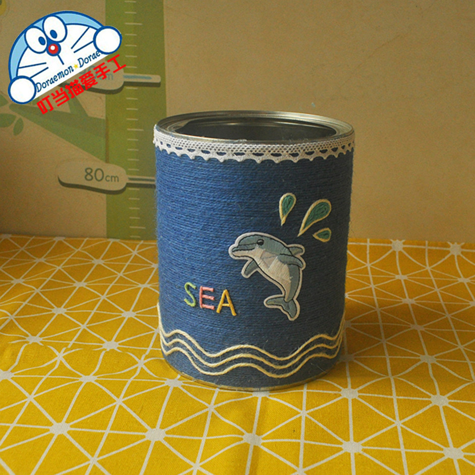 原创新品海豚幼儿园手工奶粉罐变废为宝diy花盆环保创意亲子作业