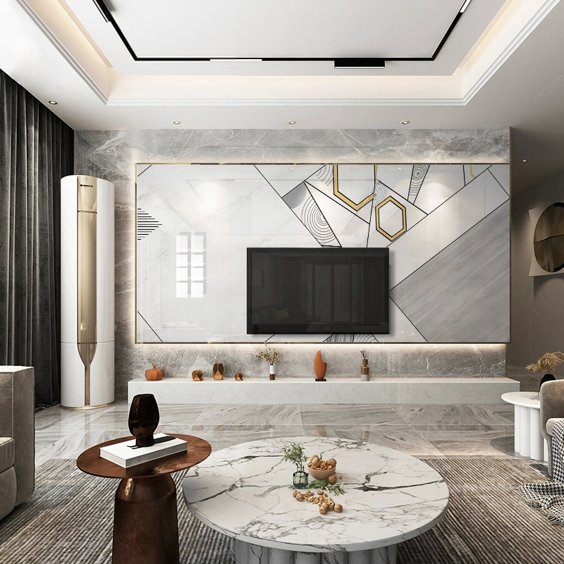 轻奢奢风悬空大理石电视背景墙现代简约客厅悬浮岩板瓷砖背景墙