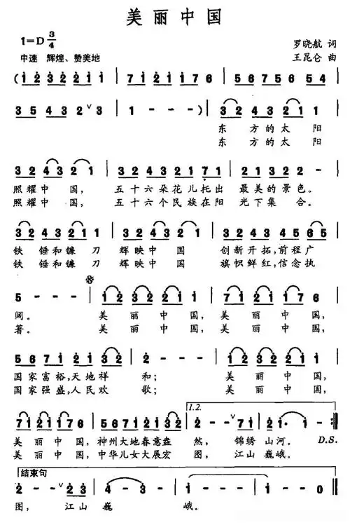 美丽中国(罗晓航词 王昆仑曲)简谱歌词