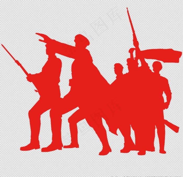 创意八一建军节护旗手升旗挥舞红旗剪影元素