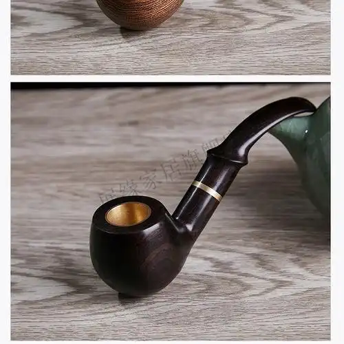烟斗复古实木金圈直手工老式旱烟旱烟袋烟袋老年人烟斗