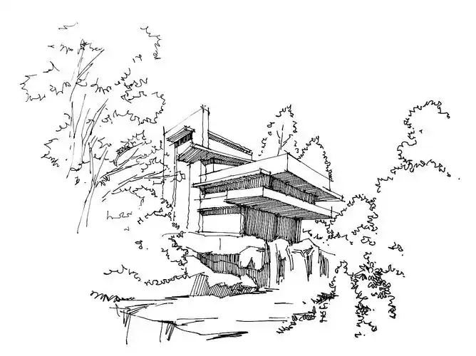 流水别墅钢笔画