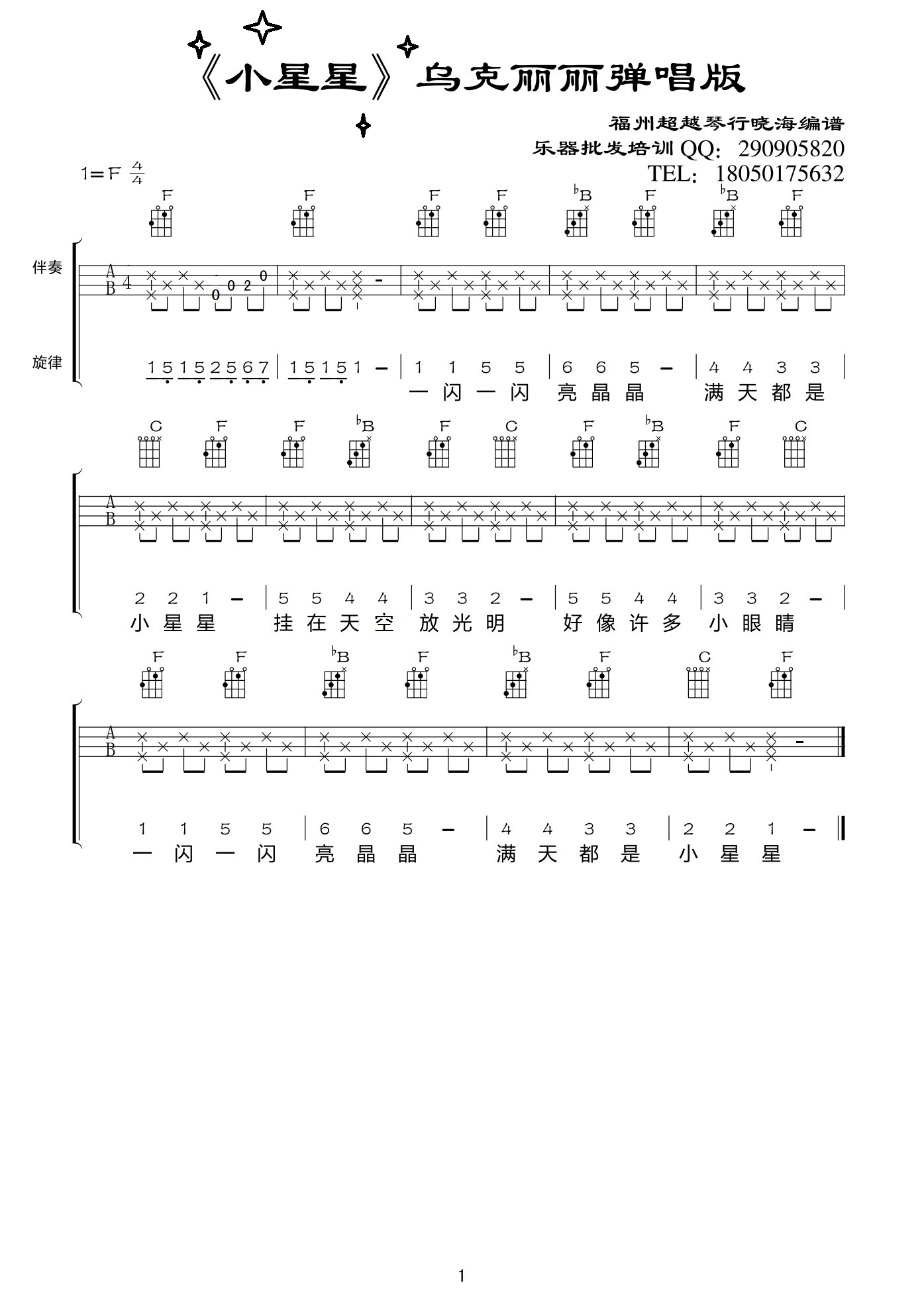 小星星尤克里里弹唱曲谱