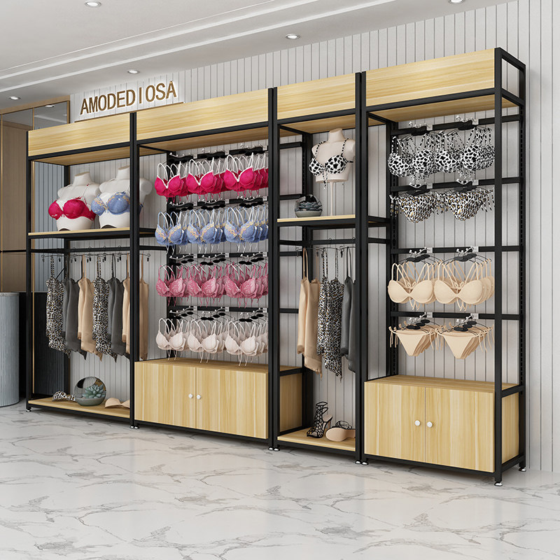 内衣店货架文胸内裤展示架靠墙睡衣展示柜服装店金色置物架带挂钩