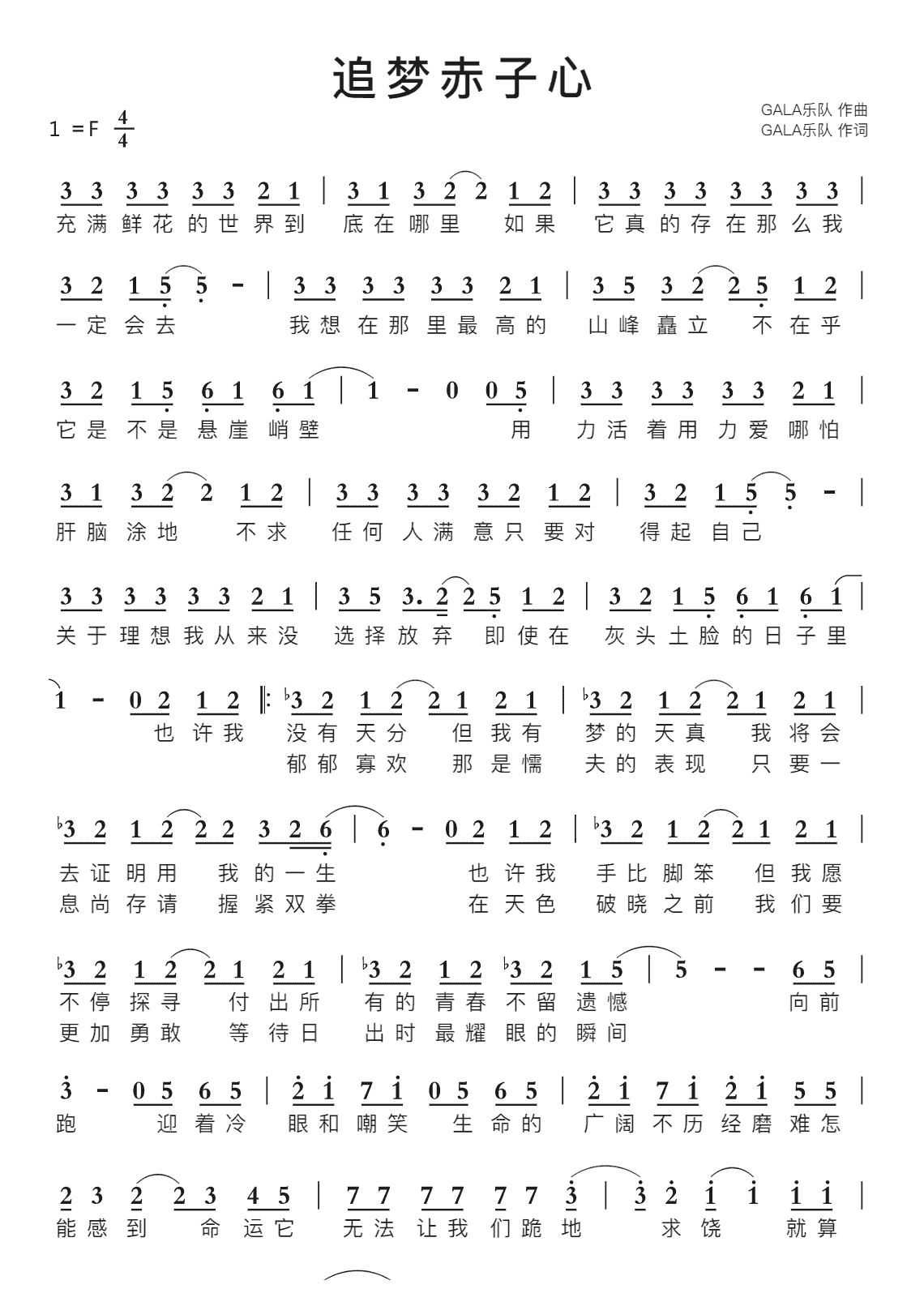 追梦赤子心gala简谱