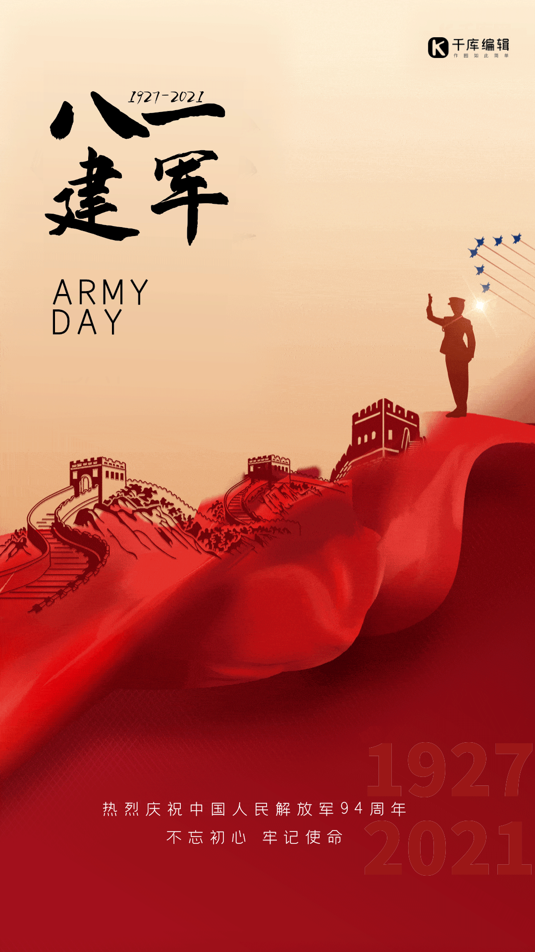 八一建军节长城军人红色简约大气