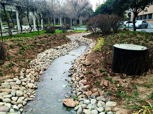 市教育局机关大院新开挖的水渠收集到的办公大楼生活废水.
