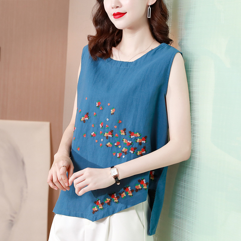 粉红甜美小清新衬衫女春夏新款七分袖宽松上衣绣花打底衫 白色 xl