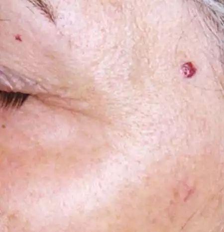 中年男士躯干部的红色丘疹—— 樱桃状血管瘤