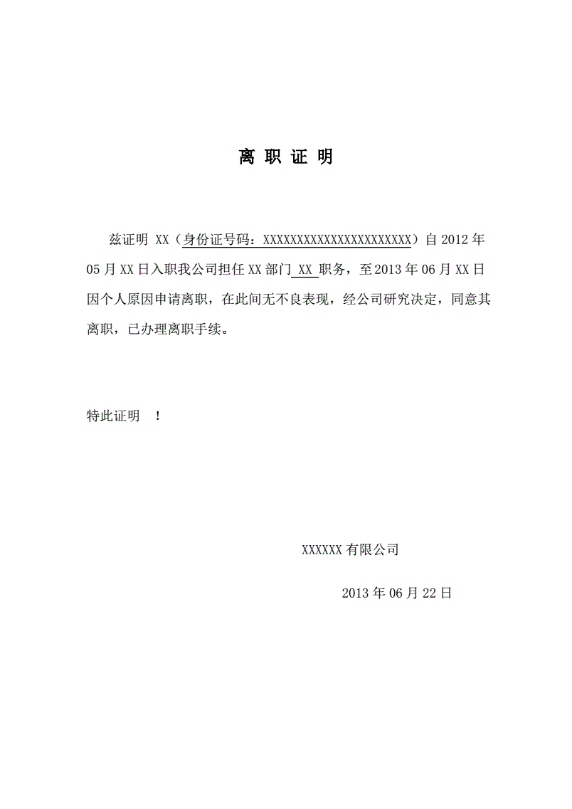 个人离职证明