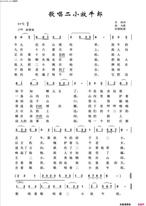 歌唱二小放牛郎简谱歌词儿歌zez曲谱