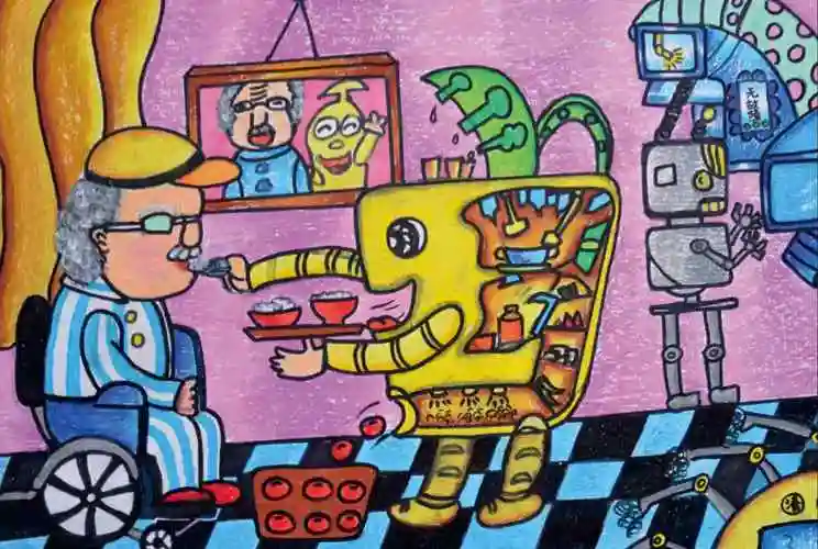 二等奖小学生科幻画《智能化妆屋》鉴赏
