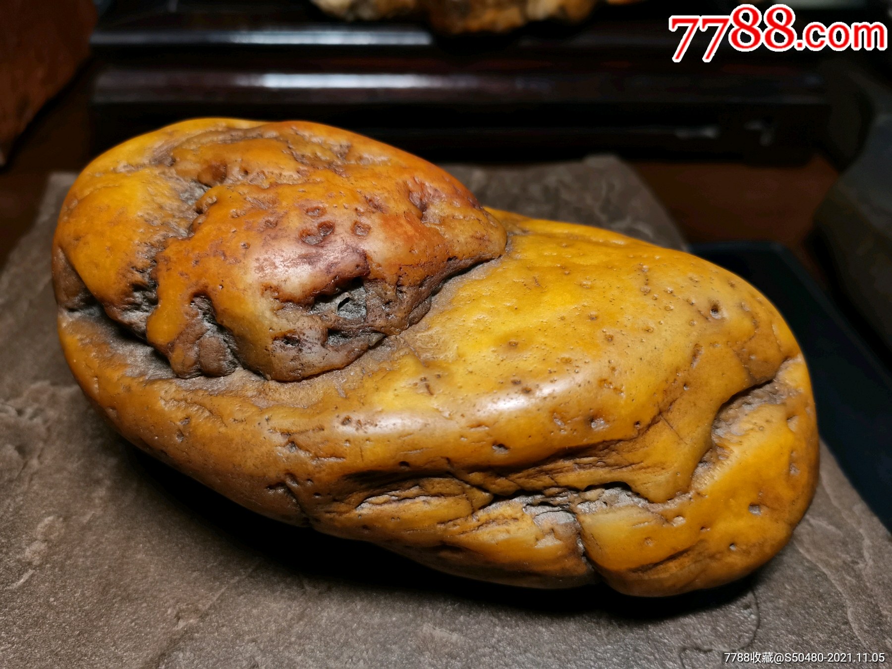 金钱纹黄蜡石原石摆件,未经任何打磨
