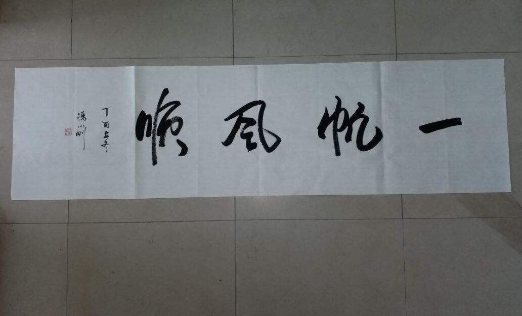 著名影视导演冯小刚,14幅毛笔艺术字展,梁宏达说:这字有点横_书法