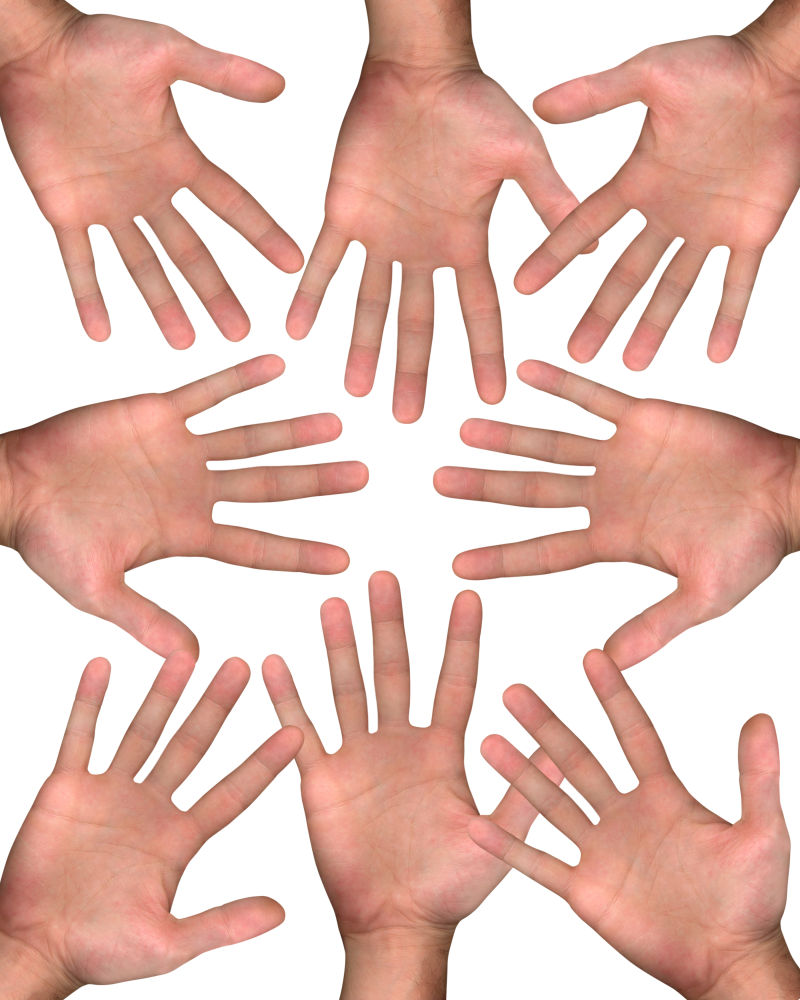 白色背景上的团结合作手势
