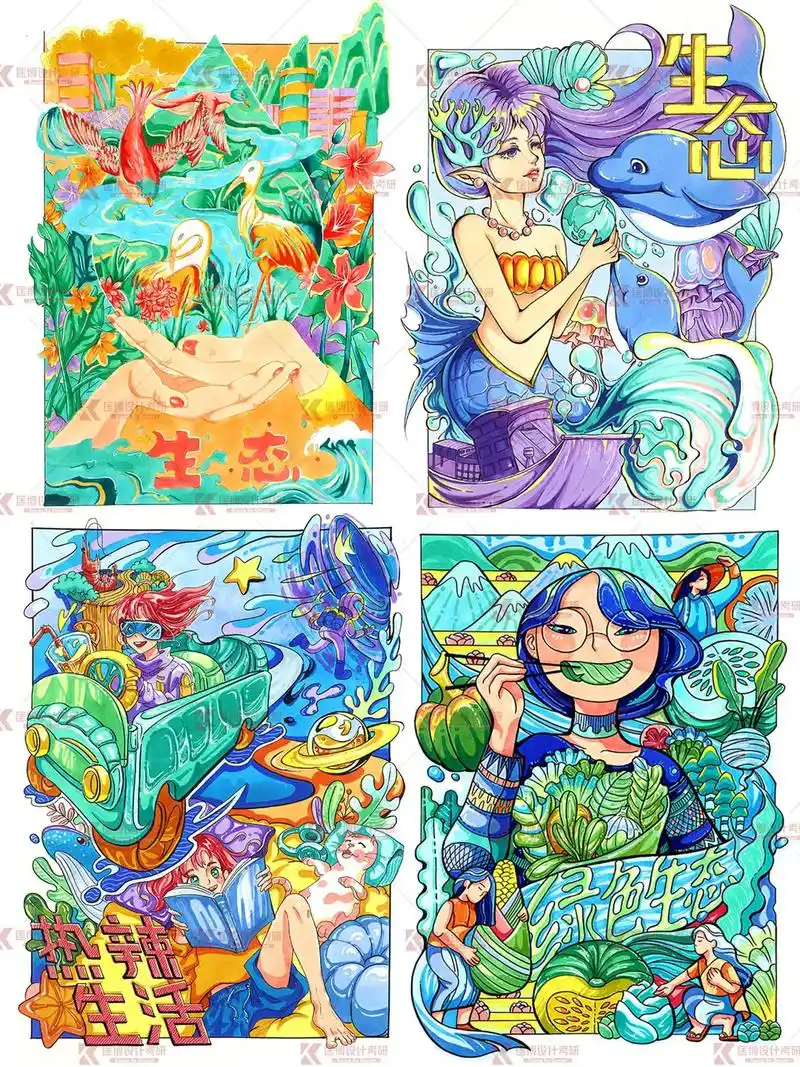 【海洋保护主题】视觉传达设计考研高分手绘.#马克笔手绘 #视 - 抖音