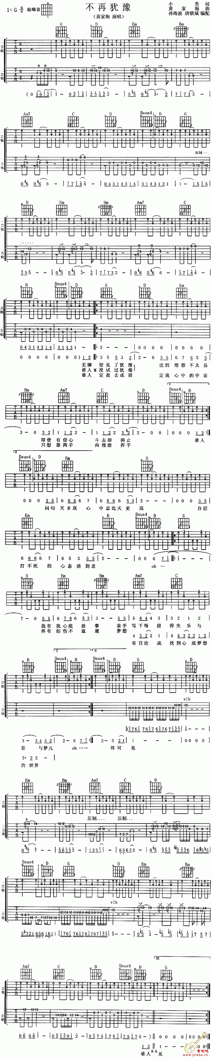 求《不再犹豫》电吉他solo谱!