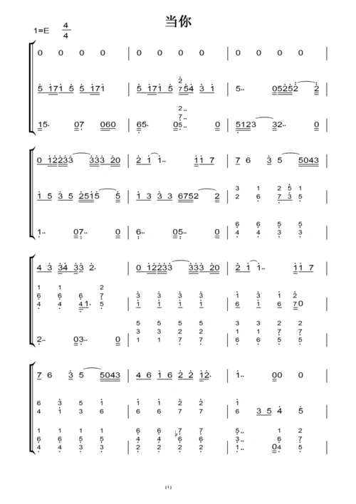 当你(林俊杰) 原声完整版 钢琴双手简谱 钢琴谱 钢琴简谱.pdf