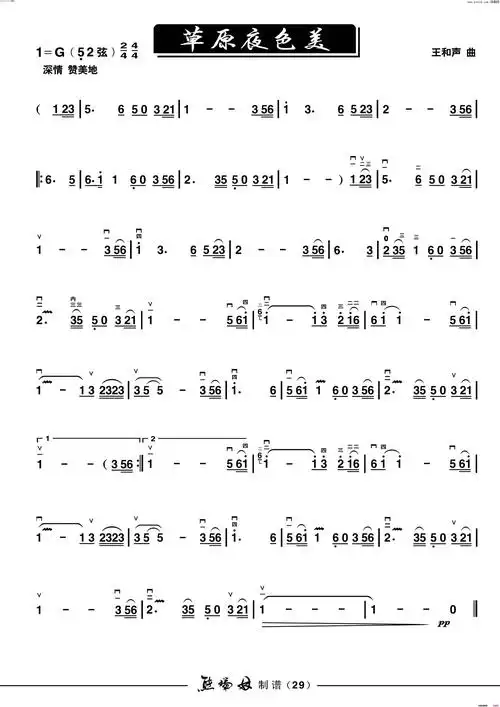《草原夜色美》原创二胡曲谱,王和声作曲-发簪网