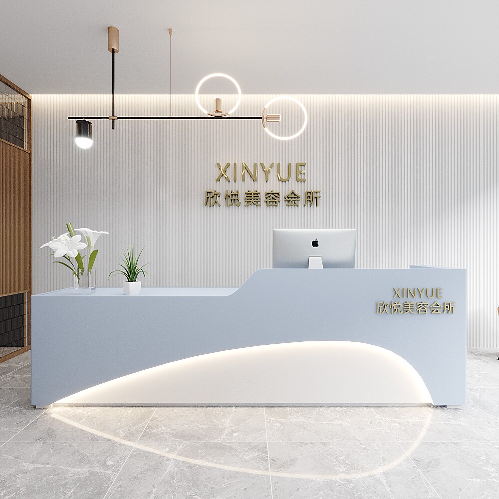 美容院吧台养生会所收银台公司酒店轻奢网红大气前台接待台圆弧形