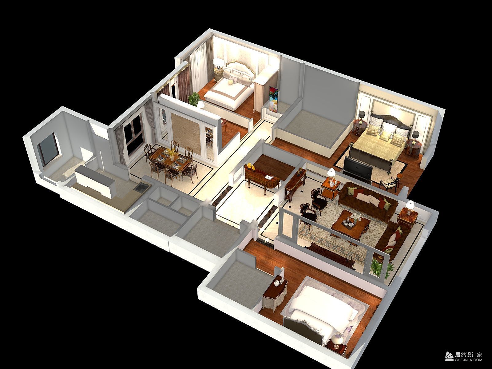 3d户型图 ——金河壹号|空间|家装设计|孟华婧 - 原创作品 - 站酷