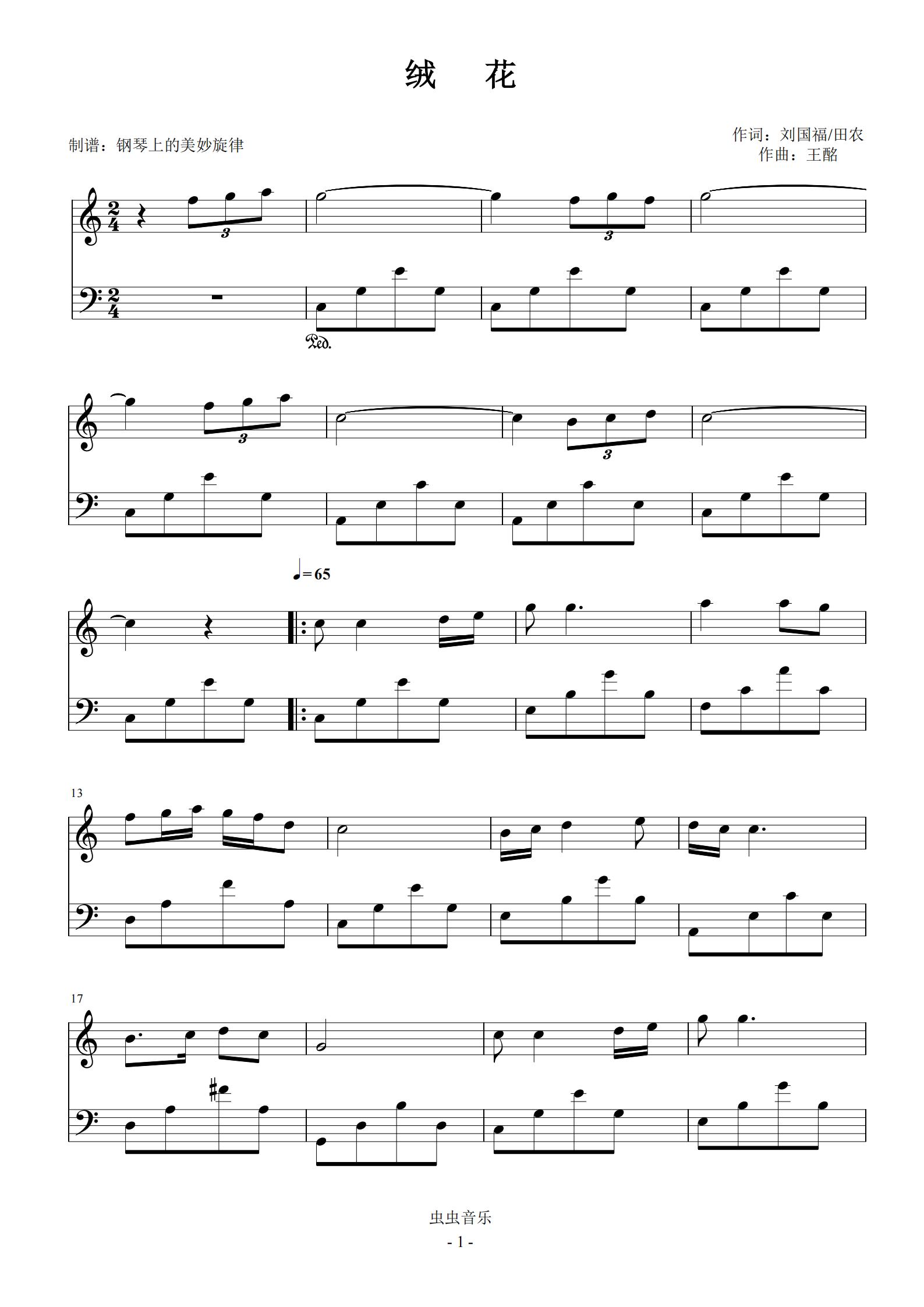 绒花钢琴谱-a bin-虫虫钢琴