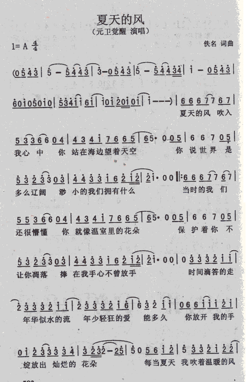 夏天的风 歌谱简谱网