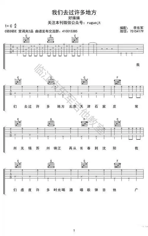 好妹妹乐队《我们去过许多地方》吉他谱-1