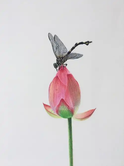 彩铅手绘|小荷才露尖尖角,早有蜻蜓立上头!
